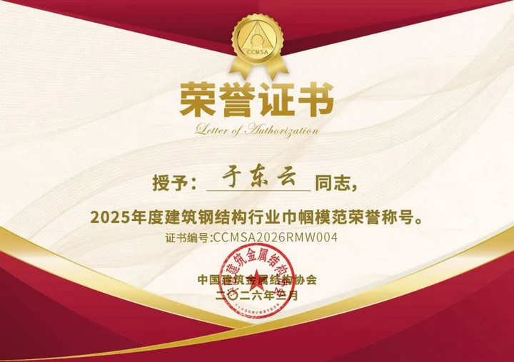 从“中国建筑金属结构协会所属行业改革开放四十年突出功勋人物”到“行业卓越企业家”,从沈阳市“五一劳动奖章”获得者到如今的“2025年度建筑钢结构行业巾帼模范”,一项项荣誉加身,是各级政府、行业各界对她多年耕耘的最好印证。这些荣誉的背后,是她对技术创新的执着追求,是对品质匠心的始终坚守,更是对“产业报国,造福社会”宗旨的躬身践行。