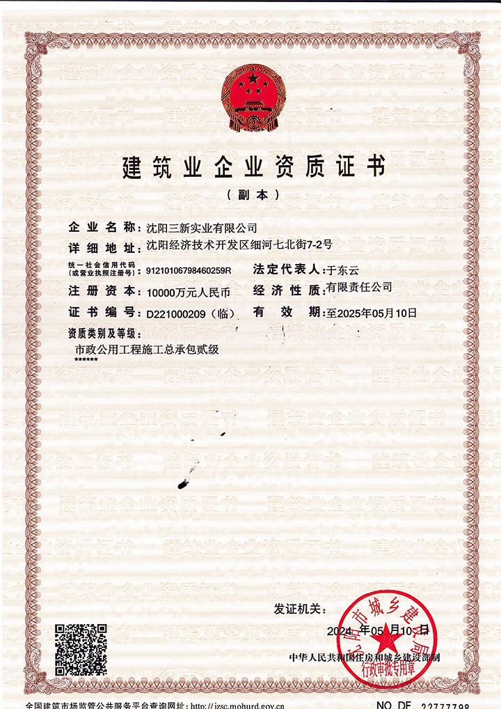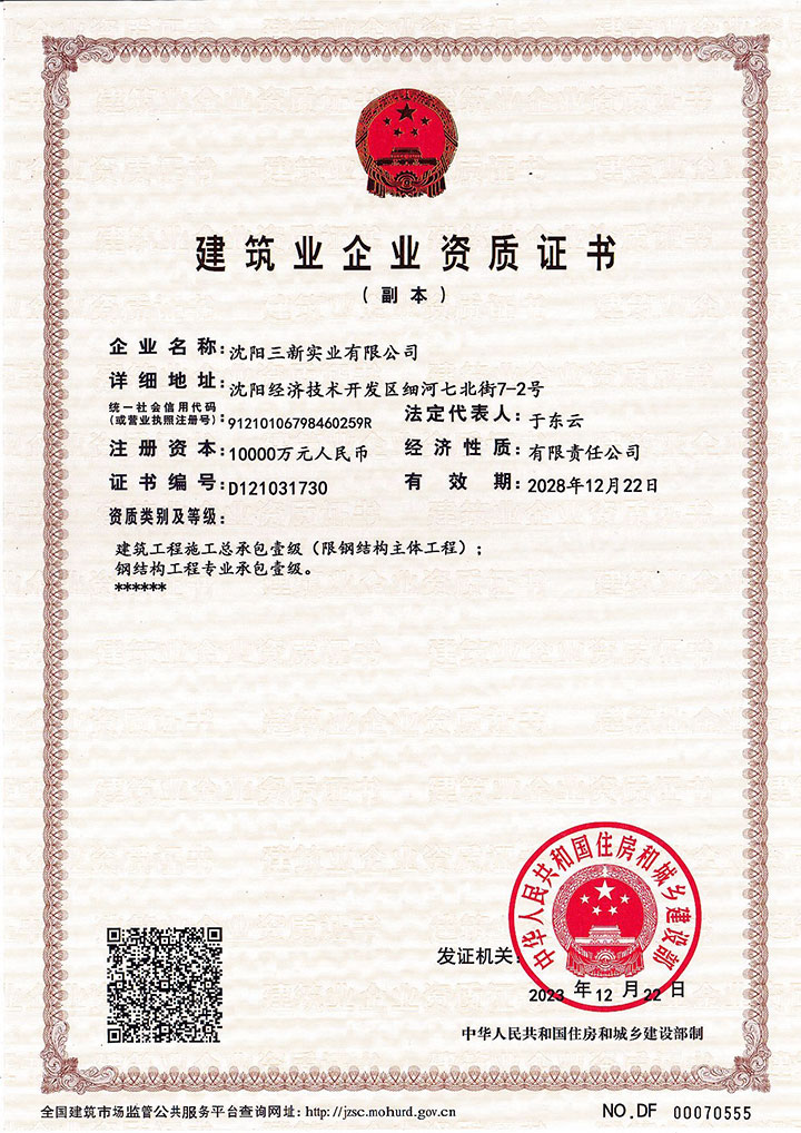 建筑工程施工总承包壹级、钢结构工程专业承包壹级