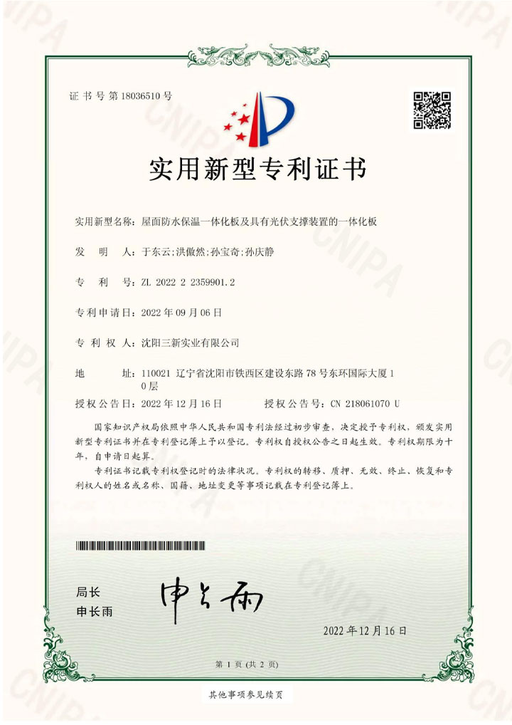自锁式一体化光伏屋面装置 |